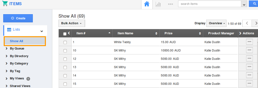 - Log in to Apptivo and access the Items App from your universal navigation menu bar.