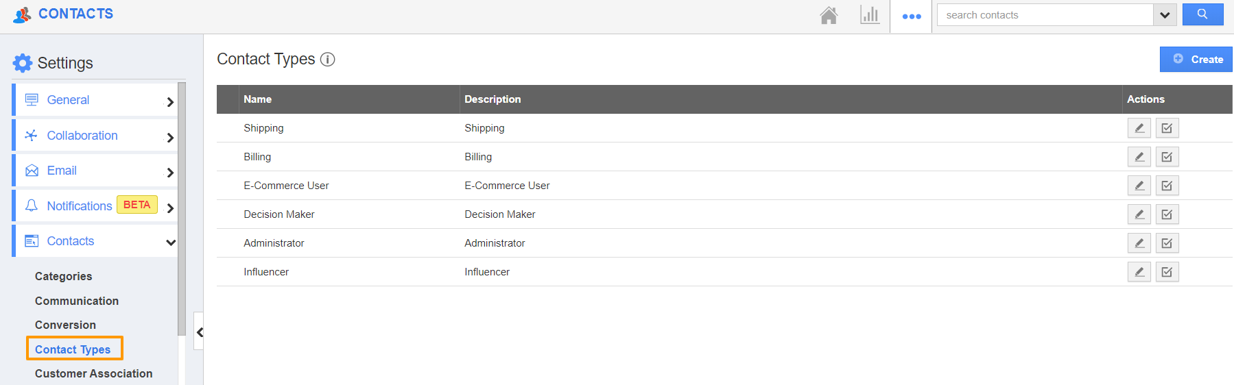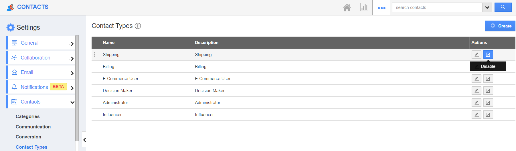 - The disabled contact type will not appear will creating or updating an existing contact.