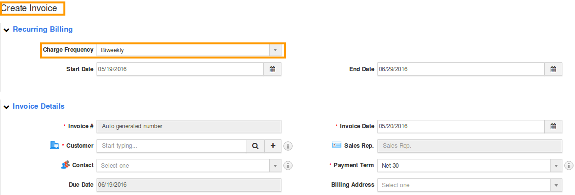 - Set the Charge frequency on whether weekly or bi-weekly or monthly and set start and end date.