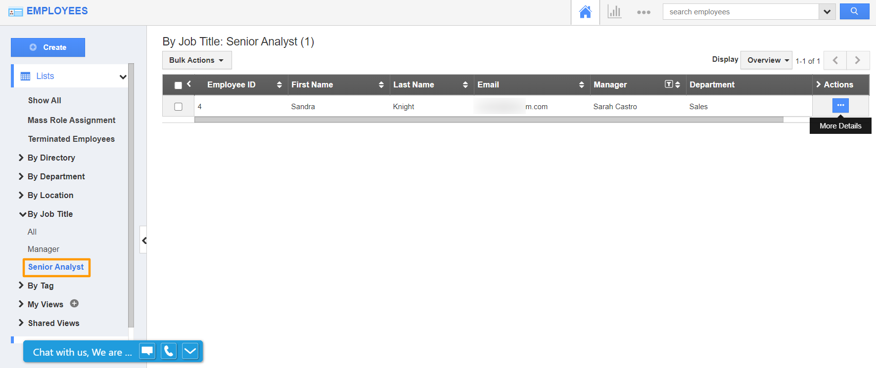 - Choose a job title to view employees in that particular job title. Here, Senior Analyst.