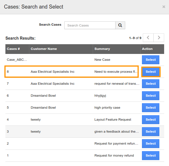 - Select a case from the list, which you would like to add into a creating work order.
