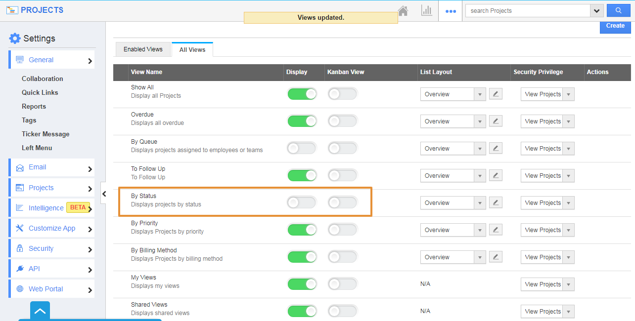 - Now, go to the Projects Home page you can view the By Status view will not be displayed on the left panel.