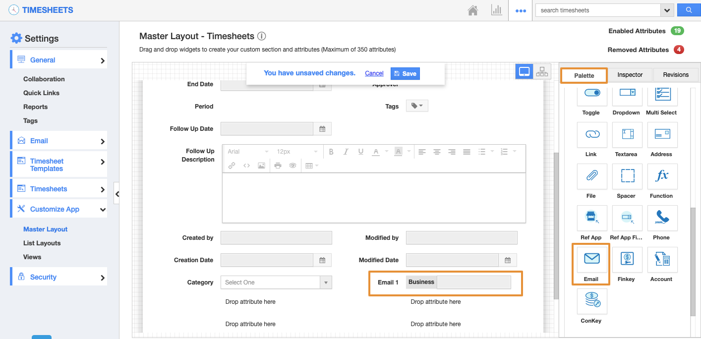 Timesheets App allows you to add any custom fields that can be customized by using the Master Layout by default. These are like business attributes which support you to customize your business with the custom fields. They can be quickly and easily added for customization. You can load your creation page with new sections and fill them up with your own text fields, radio buttons, dropdowns, etc.
