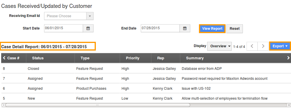 - Click on “View Report” button to view the Cases Received / Updated by Customer.