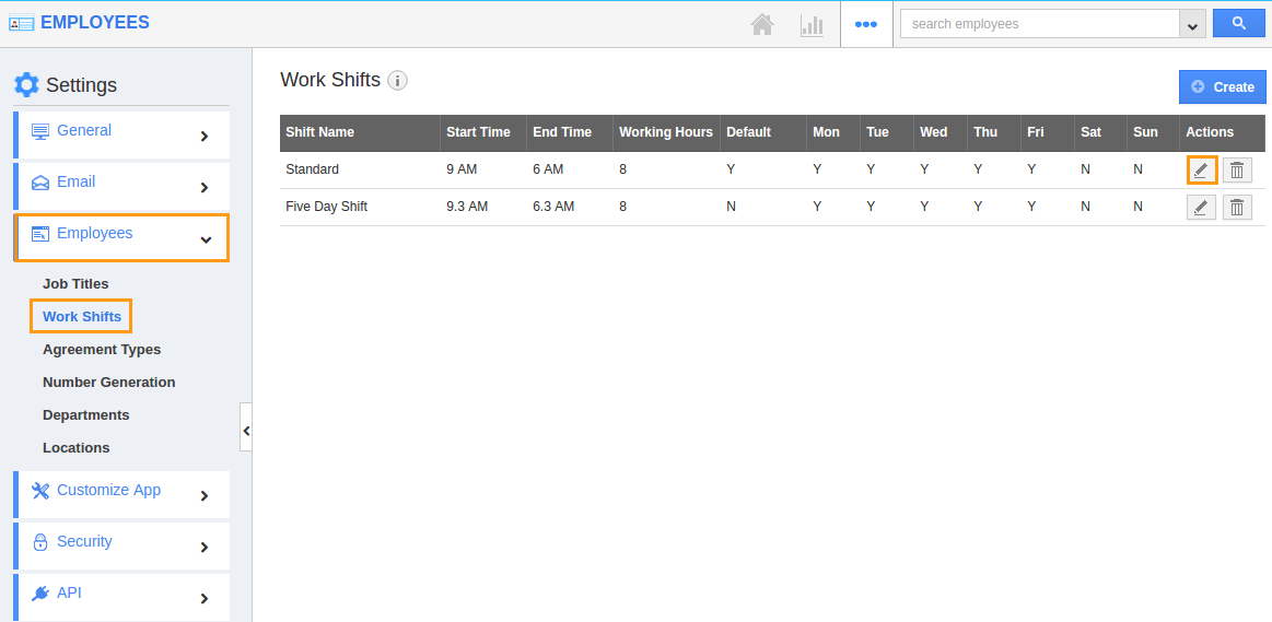Employees app allows you to add work shifts to employees. You can edit those work shifts by customizing the employees app.