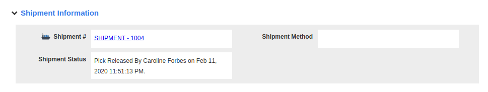 - Now scroll to the bottom of the order and you will see the Shipment Information. Click on the Shipment Number link.
