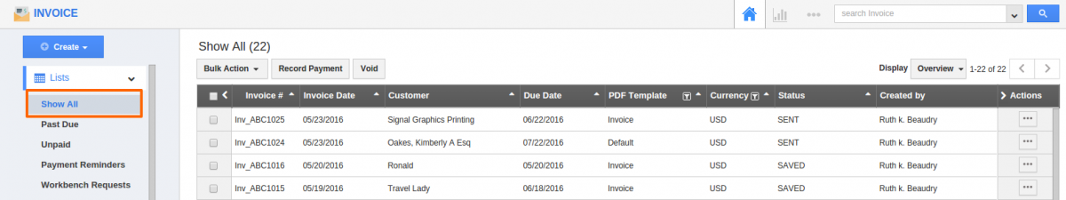 Invoice app allows you to archive/ hide invoices from the unauthorized persons or the employees who does not have the access right to modify the invoices. Lets have a look at the following steps to archive bulk invoices.