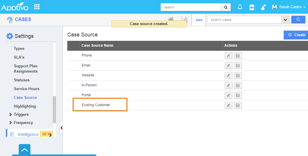 Case Source is an attribute that is assigned to each case. You can customize this list based on where the cases are acquired. This helps you understand the case channels that are the most effective.