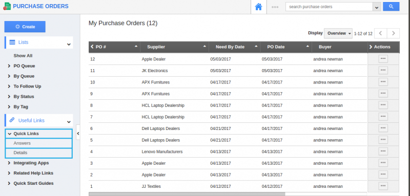 For instance: Say, an employee who is new to the company wants to know the details of the purchase orders. In this scenario, quick links helps the Employee.