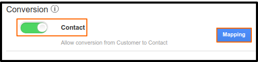 - Now, enable the contact conversion toggle button and Click on Mapping next to Contact to map the fields.