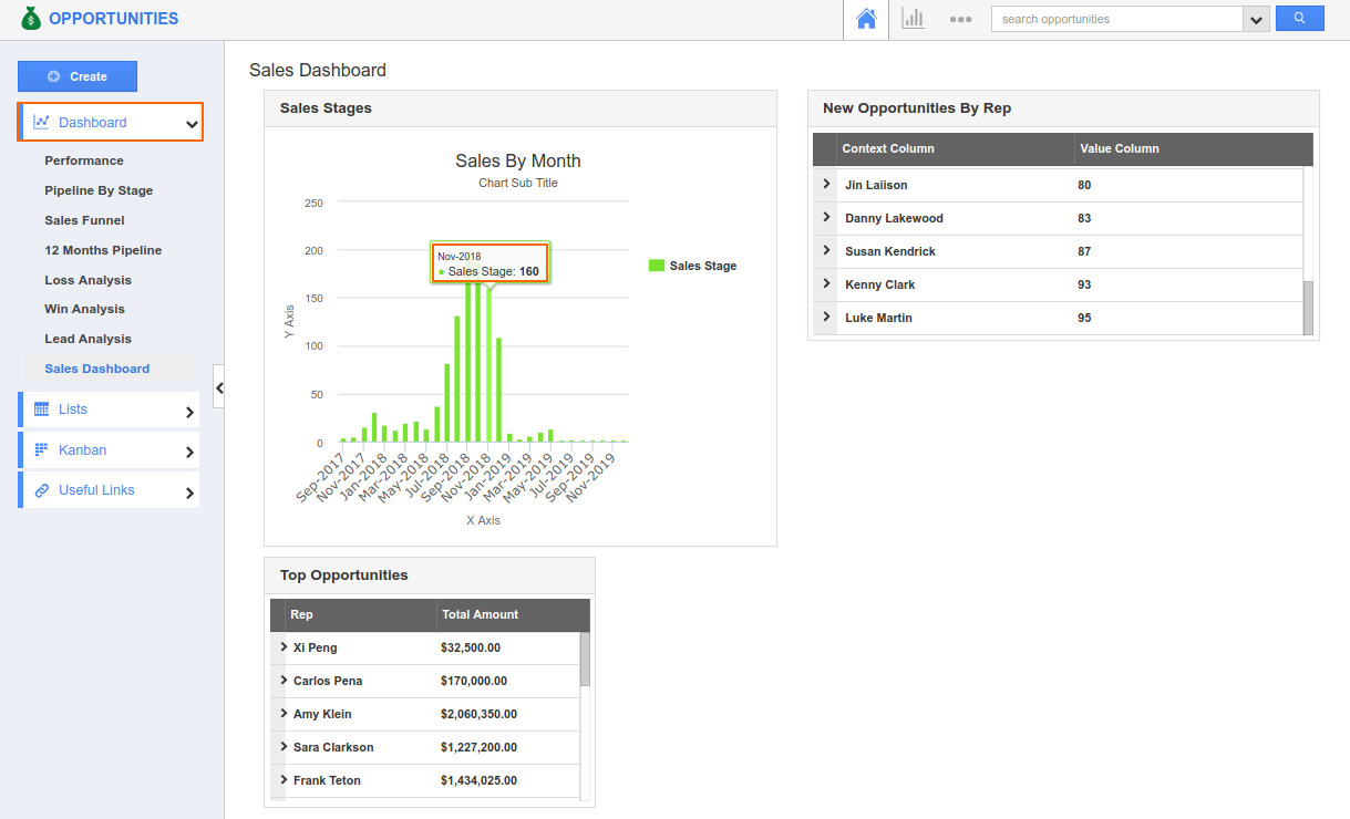 - In the Left side panel of Opportunities App select the configured dashboard.