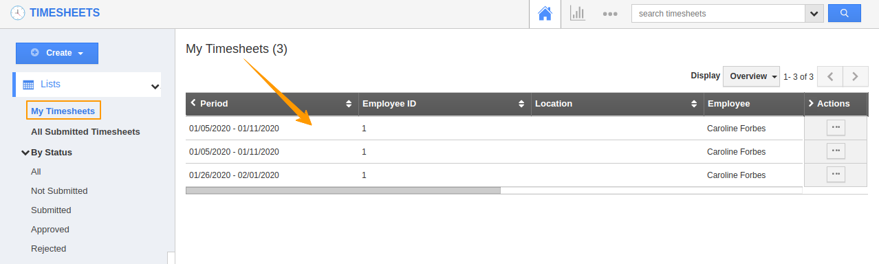 - Now, Go to My Timesheets page in Timesheets App and select a record to convert. A Timesheet can be converted to an Invoice only after approval.