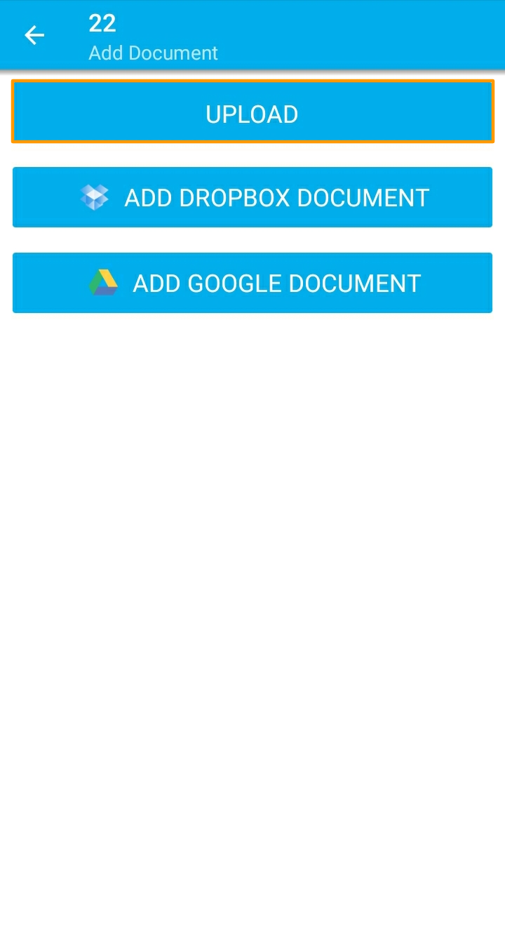 - In the Add Document page, select Upload to add documents from your native file manager.