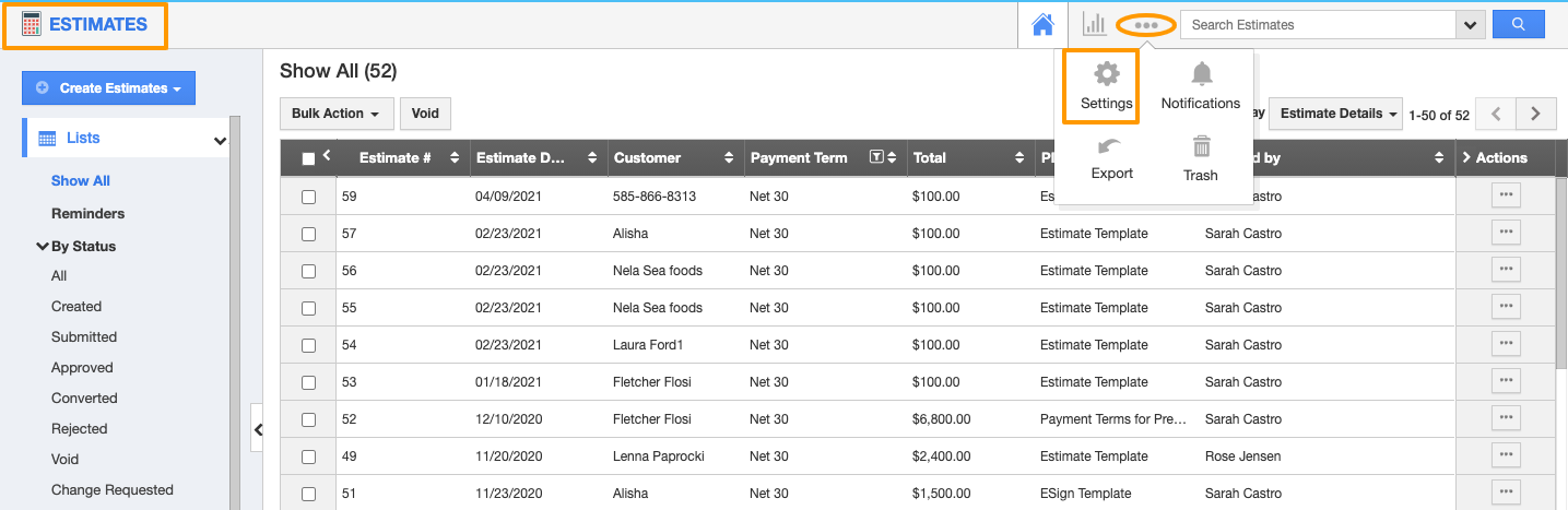 The Estimates templates are the pre-formatted templates that can be used to quickly create an estimate. In the Estimates template, everything such as Customers, Payment Term, Services Provided, Products/Items Sold, Summary Section can also be recycled. You can load your data into the estimates template at the time of creation.