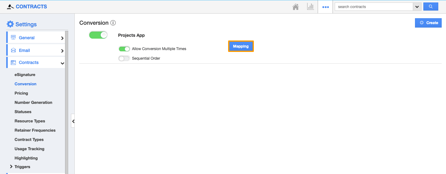 - From the Settings, go to Contracts → Conversion.
