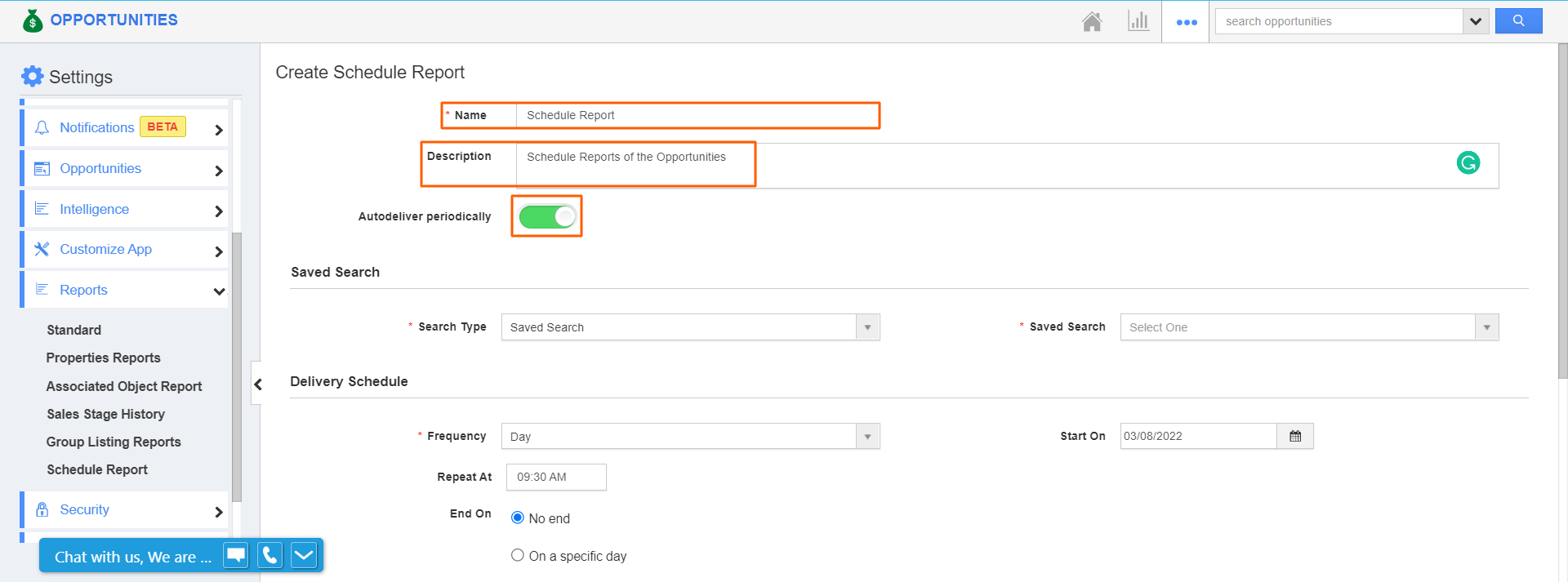 The Schedule Report feature of Apptivo provides you the ability to schedule the views and saved searches reports based on the configuration that you’ve given. By using this feature, the selected view reports will be created automatically and delivered to your emails as per your business requirements.