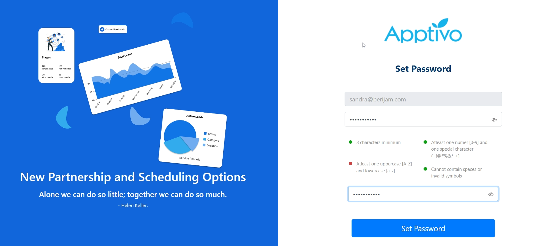 - After having the password set, it will be redirected to the “Set Password” page and confirm the password to the account.